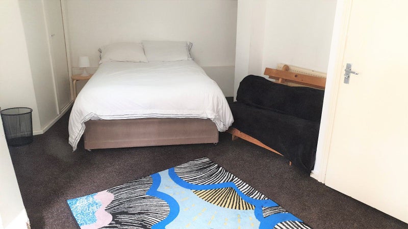 The available bedroom is spacious and well-equipped with essential furnishings for a comfortable stay. The shared areas include 2 full bathrooms, a modern kitchen with 2 fridge freezers, dishwasher, washing machine, and dining table, as well as a cozy living room with a large TV. The atmosphere of the flat is welcoming and conducive to relaxation, making it a perfect place to unwind after a long day.