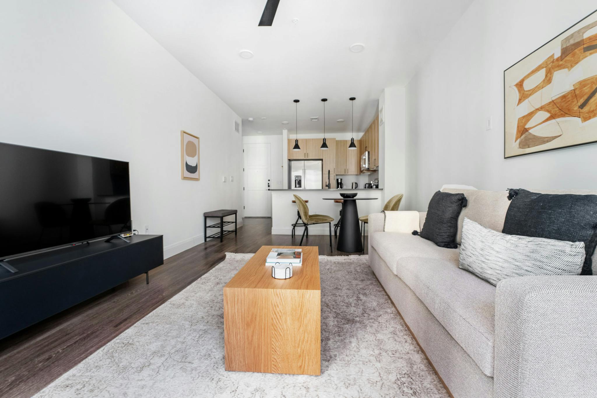 This apartment has flexible lease options, allowing you to book it for one month, a year, or more.