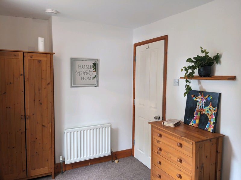 The available bedroom is newly decorated in restful colors, overlooking the quiet back garden. Fully furnished with a double bed, bedside cabinet, chest of drawers, wardrobe, and shelving, the room also offers space for a desk, ideal for remote work. The communal areas are tastefully decorated, promoting a friendly atmosphere among housemates. With superfast fiber optic broadband and a mix of shared interests, residents can enjoy socializing, cooking, watching TV, and more in a comfortable and practical living space.