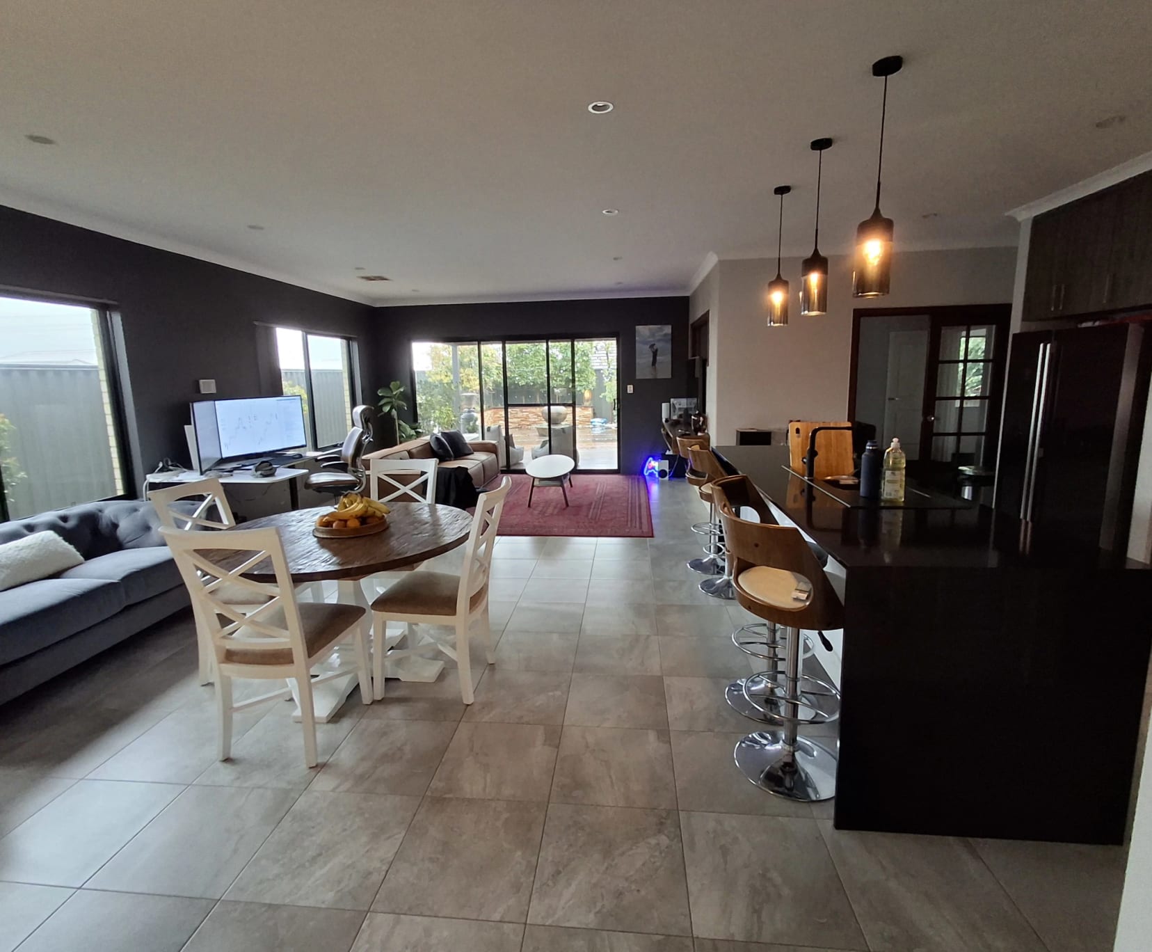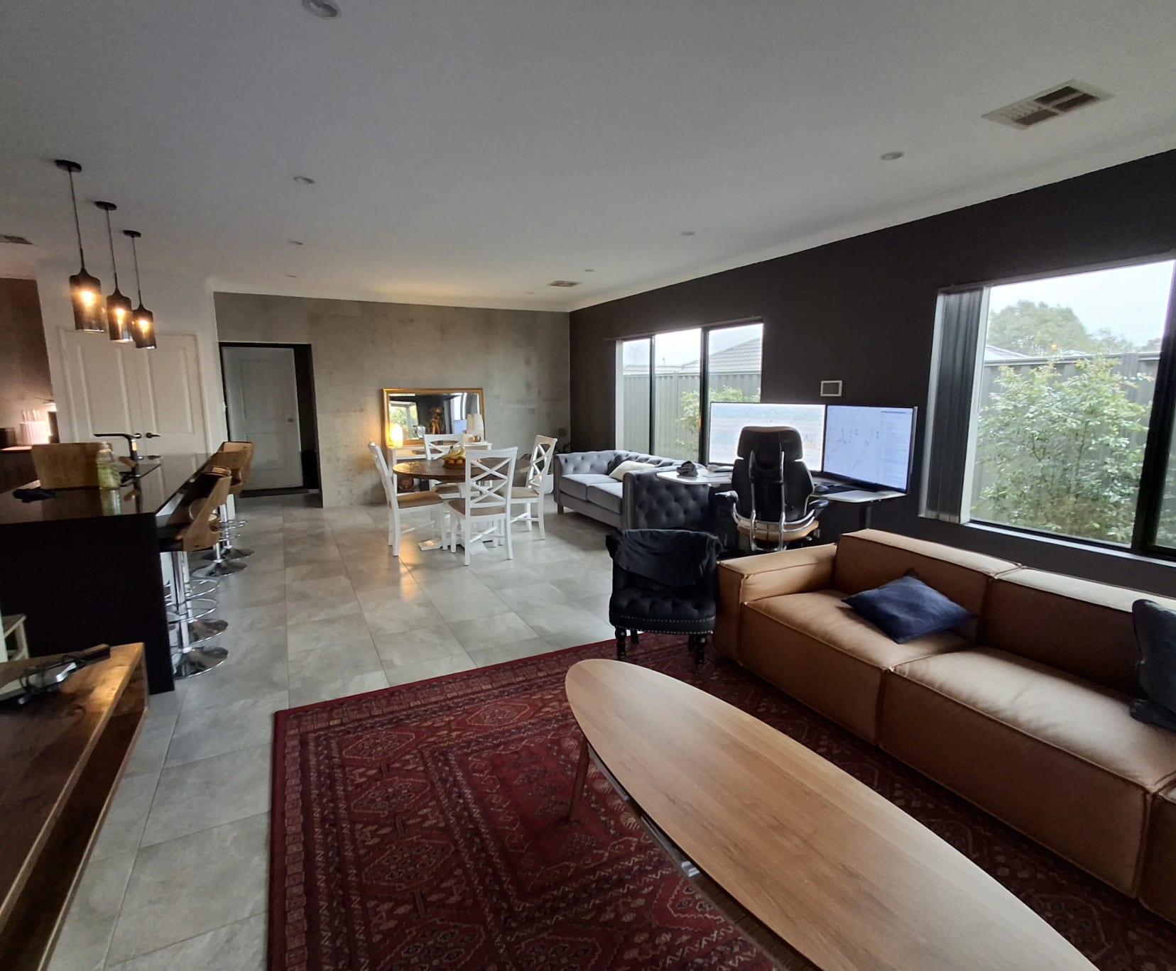 I have an immaculate beautiful luxury home. The accommodation is the back of the house which has 3 rooms and own bathroom/toilet and common room in the middle. One room available and a spare room for some sotrage or as it is now, an communal office.
