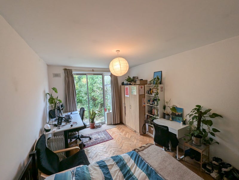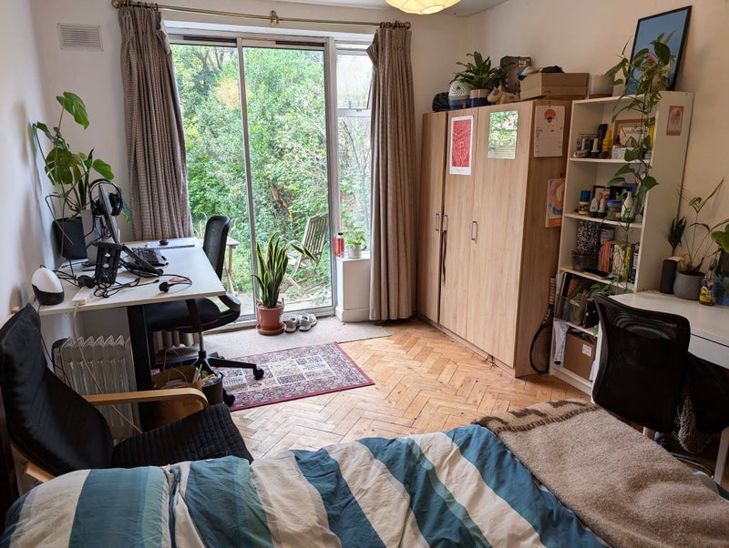 Located in Queens Park, this property offers a large and comfortable room for rent. The fully furnished room includes essential amenities such as a bed, wardrobe, bookshelf, chair, and desk, catering to the needs of working professionals. French doors open up to the back garden, providing a serene view. The property boasts a well-maintained living room with a couch and dining table, a fully equipped kitchen, a shared bathroom with a shower, sole use of the garden, a washing machine, and storage space. The rent is £850 per month, excluding bills, with a deposit of £850.