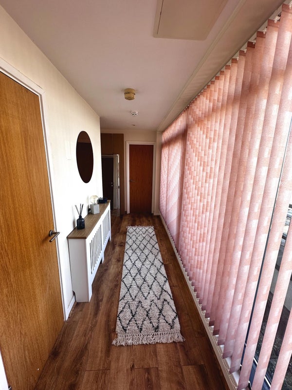 The bedroom exudes comfort and convenience with its spacious layout and modern furnishings. The en-suite bathroom adds a touch of luxury, while blackout curtains ensure a peaceful night's sleep. The shared spaces, including the kitchen and living room, are well-equipped and designed for practicality. The overall atmosphere of the flat is cozy and welcoming, making it a perfect place to relax and unwind after a long day.