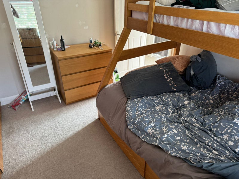 The available double room is tastefully furnished, providing a comfortable and cozy living space for the occupant. With access to a garden, residents can enjoy a tranquil outdoor area for relaxation. The shared spaces on the ground floor, including the kitchen, living room, and dining room, are well-maintained and offer a welcoming atmosphere for socializing or unwinding after a long day. The overall feel of the flat is one of comfort and practicality, ensuring residents feel at home in their living space.