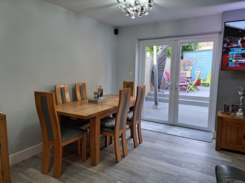 This spacious family home offers a comfortable living environment with 5 bedrooms and 4 bathrooms, including 2 en-suite shower rooms, a downstairs shower room, and an upstairs bathroom with a whirlpool bath and TV. The double en-suite room is available for £750 per calendar month, inclusive of all bills. The property is located in a peaceful area of Oakdale, just a 15-minute walk from Poole town center, bus station, train station, and hospital. With a large rear garden, ample on-street parking without restrictions, and CCTV security at the front and back, this property provides a secure and convenient living space. The current occupants are a family of 3, including a son and an elderly cat, with professions in carpentry, NHS personal assistant, and private sports massage therapy.