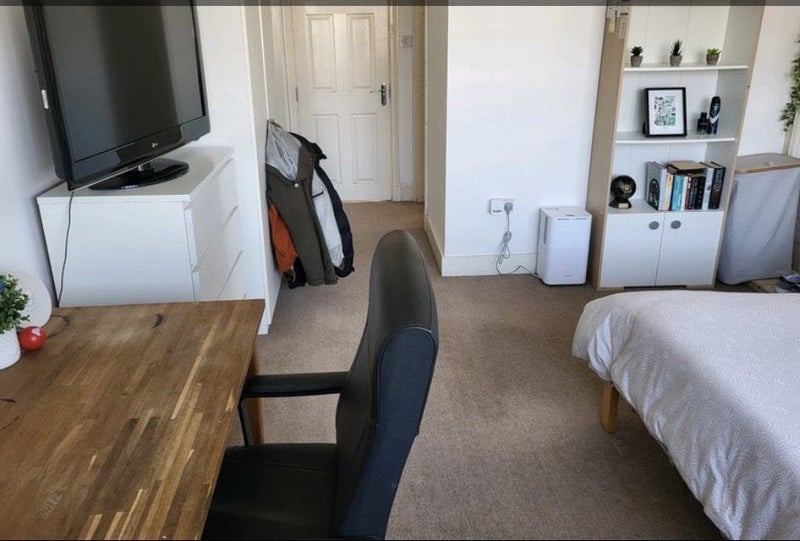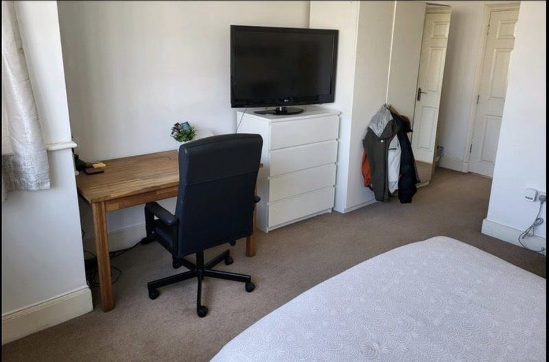 The available room is very large and ideal for working from home, featuring a spacious table for two monitors and a laptop. Additionally, the room includes two wardrobes, a cupboard, and a private bathroom with ample storage space. The house offers a sizable kitchen with modern amenities like a dishwasher and washing machine, a cozy living room, and a garden perfect for relaxation and socializing. While not a party house, residents enjoy spending time together after work or on weekends.