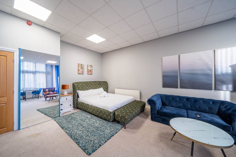 Bessemer House in Sheffield offers stylish and flexible large-size bedrooms for short stays. The property features spacious king-size bedrooms with vibrant decor and modern comforts, catering to professionals, couples, or small groups seeking style, convenience, and flexibility. Ideal for work, relocation, or temporary accommodation, Bessemer House provides a hassle-free experience without the need for long-term tenancy commitments. Room features include luxurious furnishings like a fridge/freezer, wardrobe, study desk, and sofa, along with entertainment options such as a smart TV. Amenities like fast Wi-Fi, dining nook, iron, hairdryer, and cozy bed linens and towels are provided. Shared spaces include an elegant bathroom and a lounge/diner kitchen, making it a comfortable and practical living space. The property is pet-friendly, welcoming furry friends, and all bills are included in the pricing.