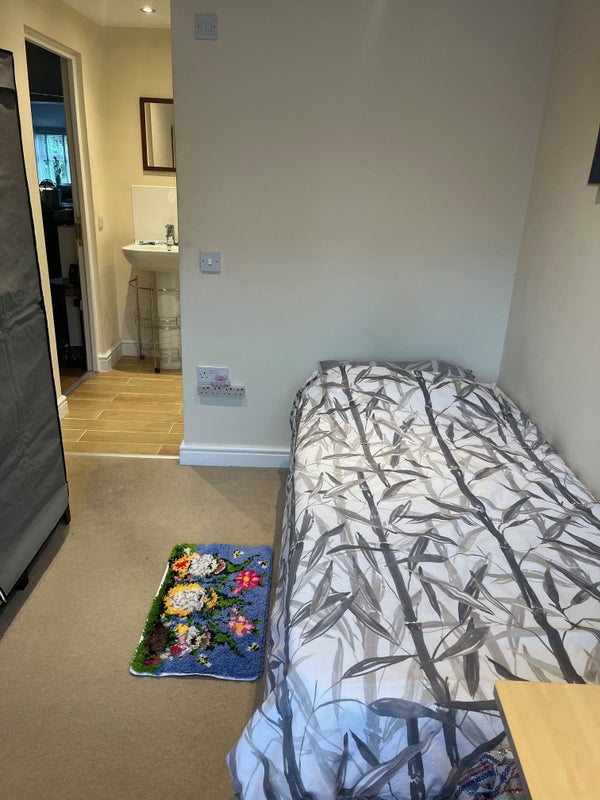 This spacious single room with an en-suite is currently available for rent. Situated on the ground floor in a converted garage, the room offers privacy and security with the option to be furnished or unfurnished. The en-suite features a double shower, adding convenience and comfort to the living space. Currently used as an office, the room can be easily transformed into a cozy living area. Additionally, the presence of a friendly dog and cat adds a homely touch to the property.