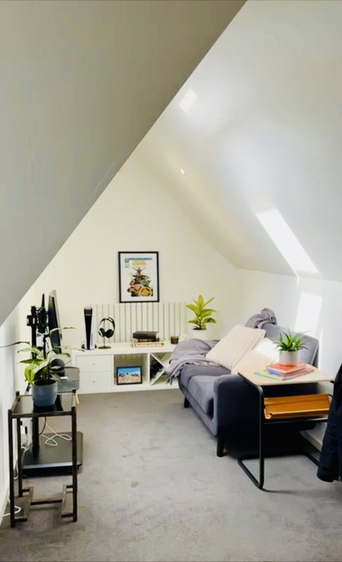 Each studio-style room is fully furnished with a separate sleeping area, a sofa/TV area, and a work desk. The rooms also feature an ensuite bathroom and a large kitchenette equipped with essential appliances. The overall feel of the space is comfortable and practical, designed for residents to enjoy a cozy and functional living environment. The shared areas promote a sense of community and offer residents a welcoming atmosphere to relax and socialize.