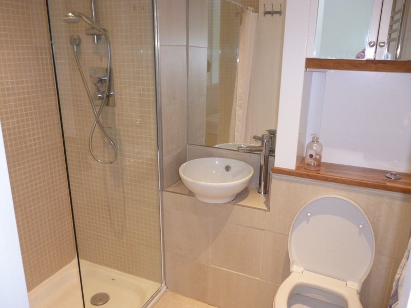 The studio flat boasts a fully fitted kitchen with integrated appliances, wooden flooring throughout, and a fitted wardrobe with ample storage space. The separate sleeping area provides privacy and comfort, while the walk-in shower room adds convenience to the living space. The overall feel of the flat is welcoming and functional, with a focus on practicality and comfort for the resident. Shared spaces are well-maintained and offer a cozy atmosphere for relaxation and everyday living.