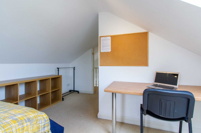 The attic room offers a cozy and comfortable living space, perfect for relaxation and study. Furnished with essential amenities, the room provides a peaceful atmosphere for residents. The shared spaces in the house are well-maintained and designed for practicality. Residents can enjoy a sense of privacy while also having the opportunity to socialize with flatmates in the communal areas.