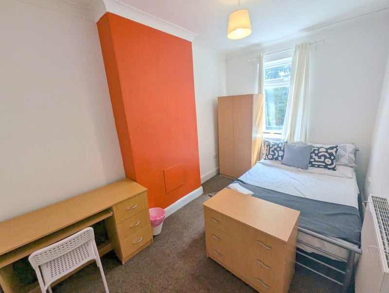 The property features spacious and comfortable rooms, each equipped with a double bed, wardrobe, desk, chair, storage, and shelves. The shared spaces include large leatherette recliner sofas, a sociable kitchen-diner, and a quality fitted kitchen with modern appliances. There are two bathrooms, one with a bath and both with showers, providing convenience for all residents. Outside, there is a yard ideal for barbecues and enjoying the sunshine.