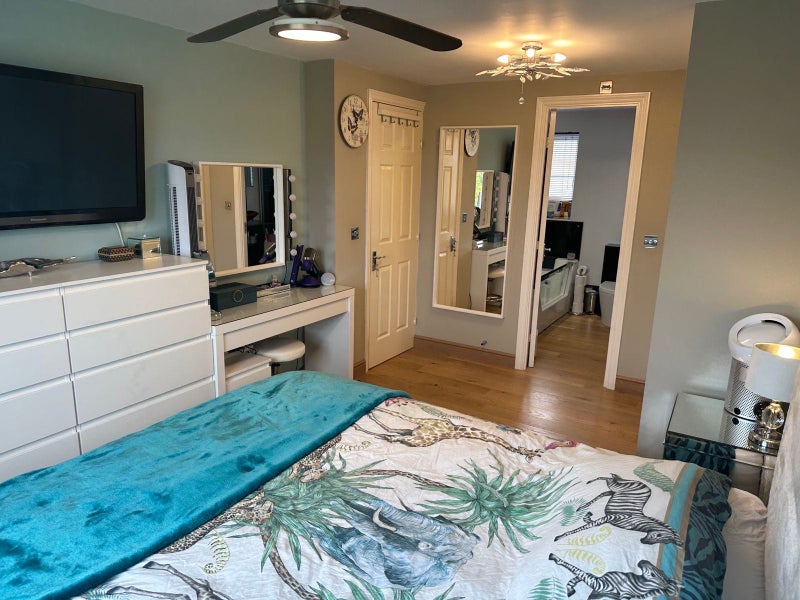 The available room in this property offers a spacious and luxurious living space. With lovely views across the green and a super king bed, residents can enjoy a comfortable and peaceful environment. The room comes with a large ensuite bathroom that includes a jacuzzi bath and a shower steam cabin, providing a touch of luxury for relaxation. The shared kitchen and dining area offer a communal space for residents to socialize and prepare meals. The overall atmosphere of the flat is serene and tranquil, perfect for those seeking a peaceful living environment. The property also includes access to a well-equipped garden gym, allowing residents to stay active without leaving the comfort of their home surroundings.
