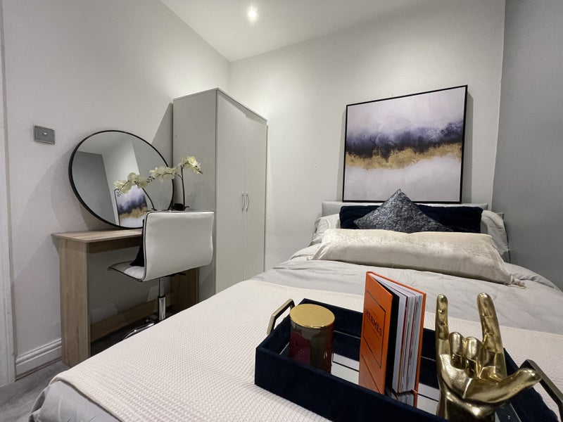 Located in the West Midlands, this stunning house has been recently renovated and exquisitely designed for professionals looking to work from home or relax after a long day of work. The property offers a range of rooms, including an ensuite room for £675 and a double room for £580, with bills and wifi included. Each room comes equipped with a TV for added comfort. The shared living space includes two toilets and showers (excluding the ensuite), as well as a well-equipped kitchen with modern appliances. The house is conveniently located within a 10-minute walk from the city center and a 20-minute walk from the train station, with shops, convenience stores, and a local gym within walking distance. Parking is also available on-site.