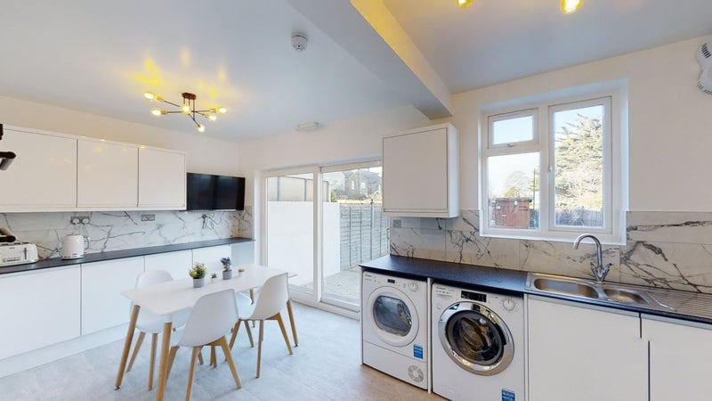 Located just a 5-minute walk from Darent Valley Hospital, this property is ideal for professionals working in the hospital. The house features all double bedrooms, each with its own shower room. Room 5 is currently available, offering the convenience of a private bathroom. Parking space is available in the front garden, and the house has been meticulously restored. The kitchen is well-equipped with two large fridges, two sinks, and a tumble dryer. Bills are included in the rent, making for a hassle-free living experience.