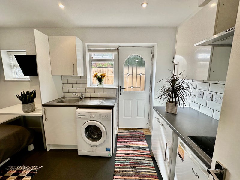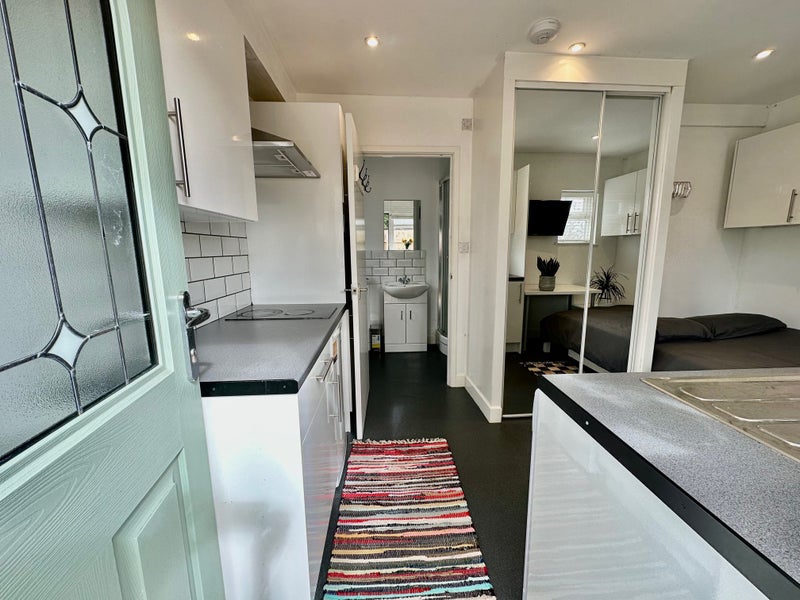 The luxury studio features a private en-suite with a shower and toilet, as well as a private full kitchen. With a private entrance and off-road parking, this studio offers comfort and convenience. The studio is fully furnished with a TV, fridge freezer, microwave, and essential kitchenware. The atmosphere is peaceful and secure, perfect for focused studying or relaxation.