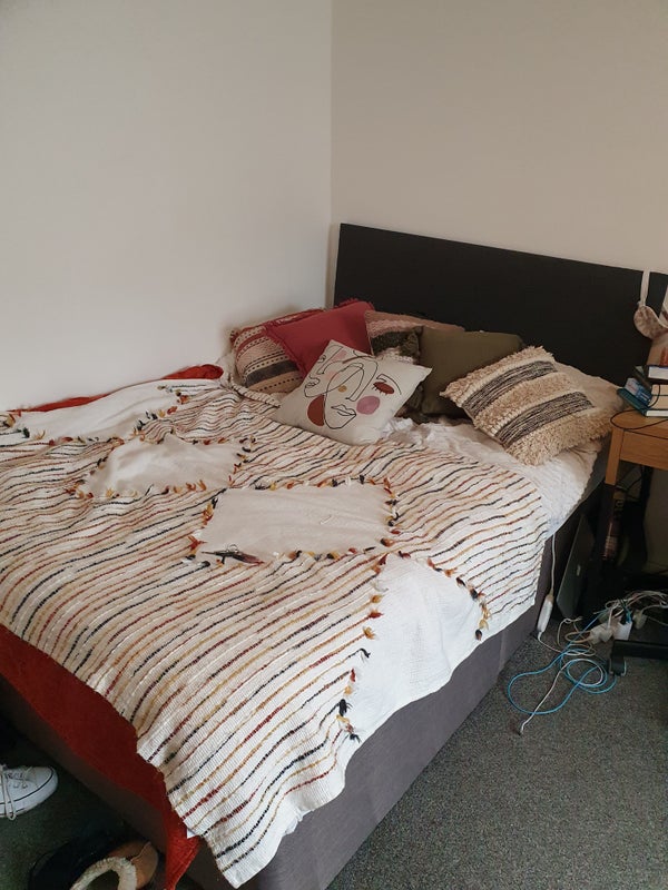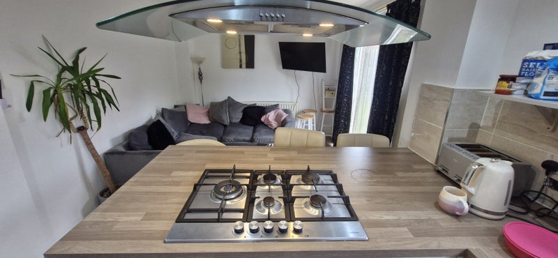 The available double room comes fully furnished with fitted wardrobes, beds, desks, and chairs, ensuring a cozy and functional living space. The communal areas, including the kitchen, breakfast bar, open plan dining/living area, and utility room with laundry facilities, are well-maintained and conducive to shared living. The atmosphere within the flat is friendly and considerate, with residents enjoying a balance of social interaction and privacy in a welcoming environment.