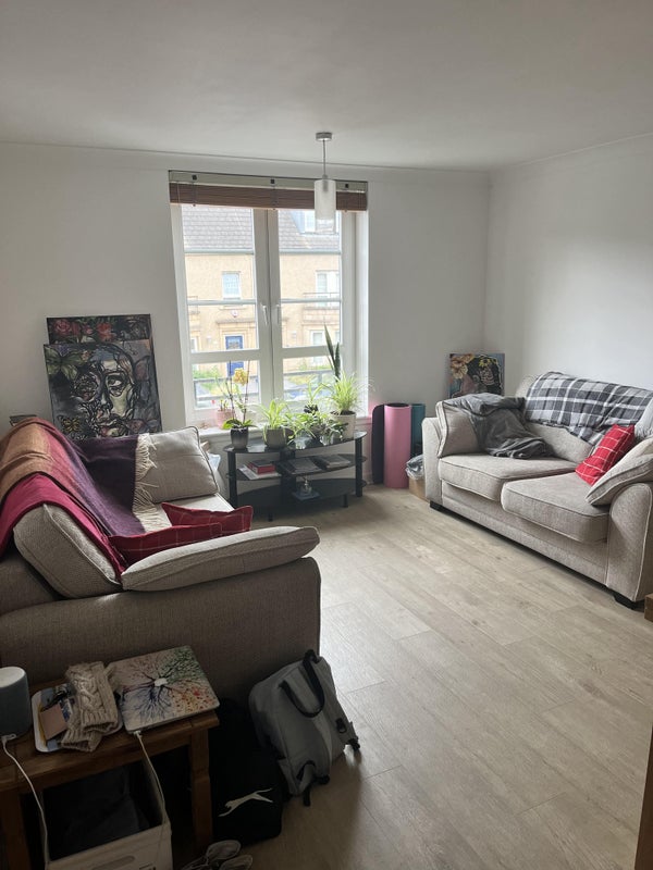 The available room is cozy and comfortable, furnished with a double bed and offering a private bathroom for convenience. The shared spaces in the flat are well-maintained and provide a calm and neat atmosphere. The flatmate, Shannon, is a 27-year-old PhD student at the University of Edinburgh who enjoys painting, gardening, dancing, and running. She values a peaceful and cozy home environment and is looking for a flatmate with similar vibes to share the space with.