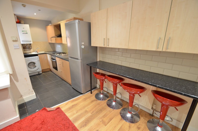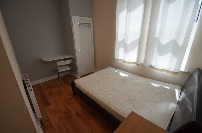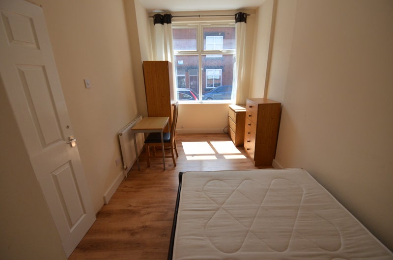 The house boasts a brand new open-plan lounge/kitchen, bathrooms, flooring, and furniture. The spacious living room is furnished with a large corner leather sofa and a flat-screen TV, perfect for relaxing or entertaining. Each bedroom is fully furnished with fitted desks, wardrobes, and comfortable double beds, ensuring a cozy and practical living space for residents.