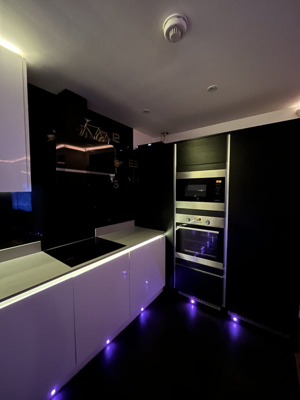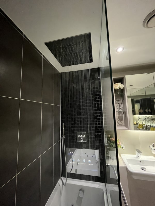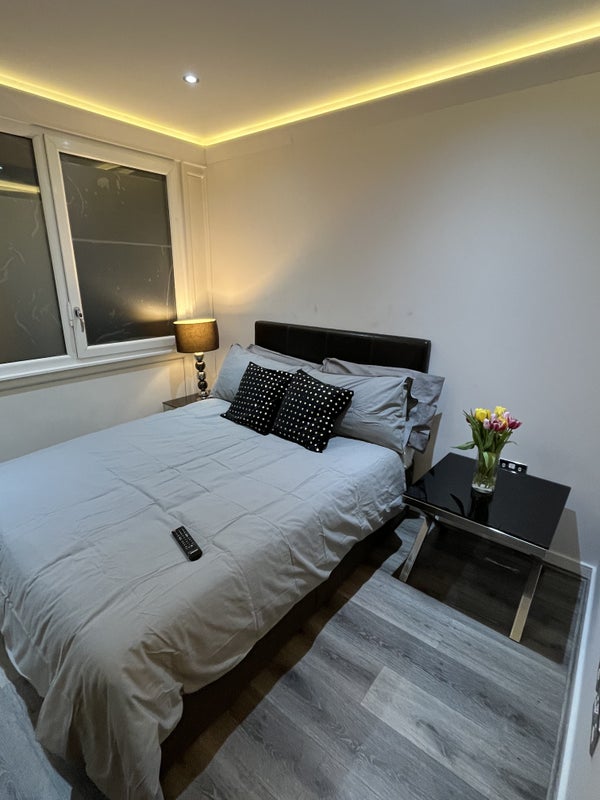 Located in Wandsworth Town, this modern apartment offers a double bedroom, open kitchen with a living room, and the latest technology. The spacious flat features large closets, a smart TV, big windows, and a luxurious bathroom with a bath, shower, built-in jacuzzi system, and a TV in the bathtub. The kitchen is fully equipped with essential appliances like an oven, microwave, electric stove, washing machine/dryer, and a dishwasher. Situated on the ground floor, the building includes a lift, bike storage, and on-road parking. Just a five-minute walk to Wandsworth Town station and a ten-minute walk to Clapham Junction, with good bus links to central London. Knightsbridge and Mayfair are only 20 minutes away.