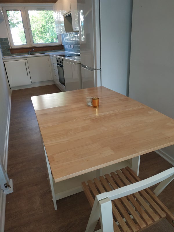 Located on the 1st floor with secure entry, this newly renovated flat boasts a south-west facing balcony with patio furniture, perfect for enjoying the sunshine. The spacious and light open-plan living/kitchen-dining area is fully equipped with modern appliances and offers plenty of storage space for bikes. The flat features a large floor-to-ceiling fitted wardrobe, a comfortable double bed with mattress, a large desk, and a desk chair. With low heating costs, double-glazed windows, a TV, washing machine, and shared drying room, this flat offers convenience and comfort. The flat is ideal for someone looking for a peaceful yet social living environment.