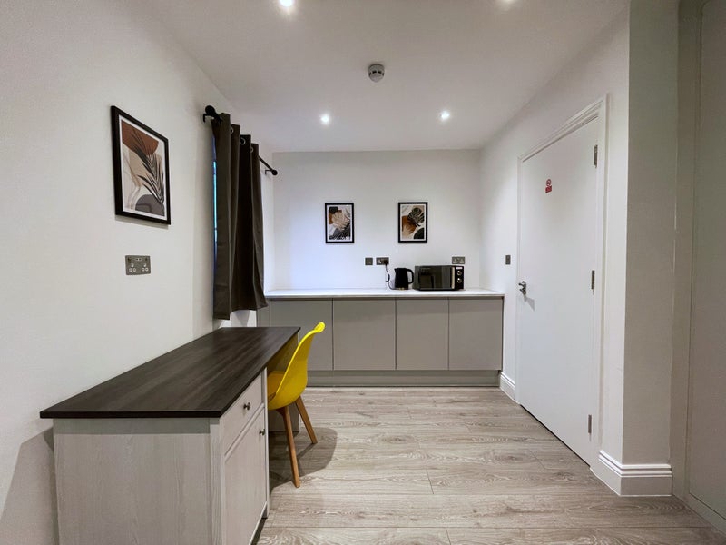 The available rooms in this property offer comfortable and practical living spaces. Each en-suite room is well-furnished and includes essential amenities like a fridge, microwave, and computer desk. The shared areas, such as the kitchen and living room, are designed for convenience and relaxation, with modern appliances and cozy furnishings. The overall atmosphere of the flat is welcoming and conducive to both social interactions and personal downtime.