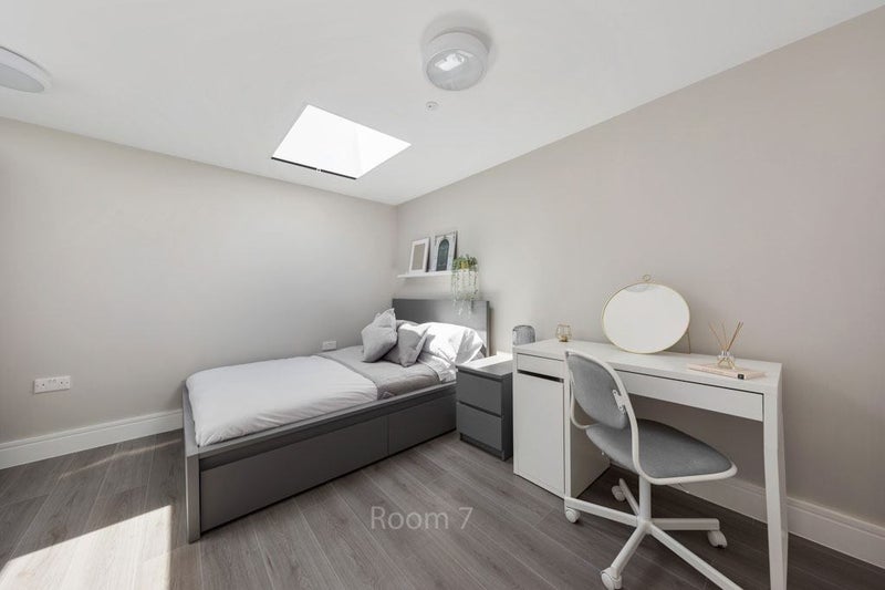 The studio style units in this townhouse provide ample living space with contemporary fixtures and fittings. Each unit includes a luxurious bathroom, brand new modern furniture, neutral decor, and excellent natural light, creating a comfortable and immaculate living environment. The communal area boasts four fully integrated kitchens, each shared between two households, with amenities such as a fridge freezer, dishwasher, and a large open rear garden for residents to enjoy.