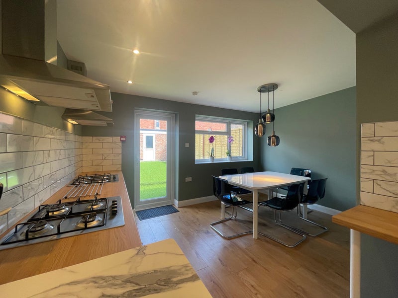 This newly refurbished share house offers six bedrooms for single occupancy in a quiet location, conveniently close to Riversite and the city center. The available room is a double room for single occupancy, with all bills included. Each modern double-sized bedroom is equipped with a 40” TV, large fitted wardrobes, desk, and chair. The house features a brand new spacious kitchen with individual designated storage, two fridge freezers, dishwasher, double oven, and two hobs. Additionally, amenities such as a toaster, kettle, microwave, cutlery, and pans are included. There is also a utility room with two washing machines and a tumble dryer, as well as a spacious living room with a big comfy sofa, 55” smart TV, and top-speed broadband with Netflix.
