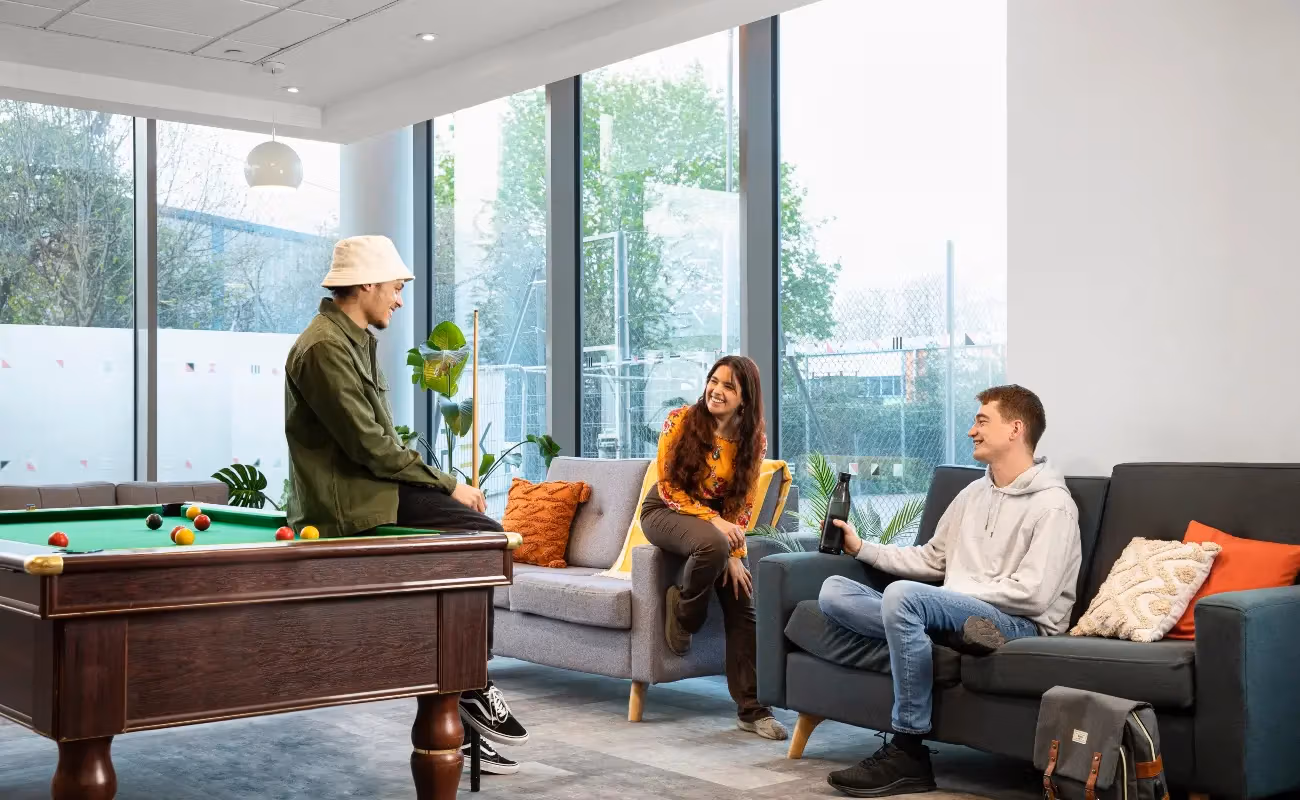 North Lodge student accommodation offers fully furnished living spaces with a compact bed, study desk, etc., communal lounges, high-speed internet, communal study areas, and an onsite laundry. Moreover, international learners benefit from social events, multilingual management staff, and supportive environment, which makes them comfortable and liveable.
