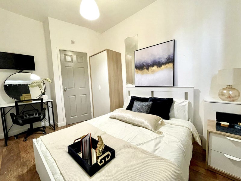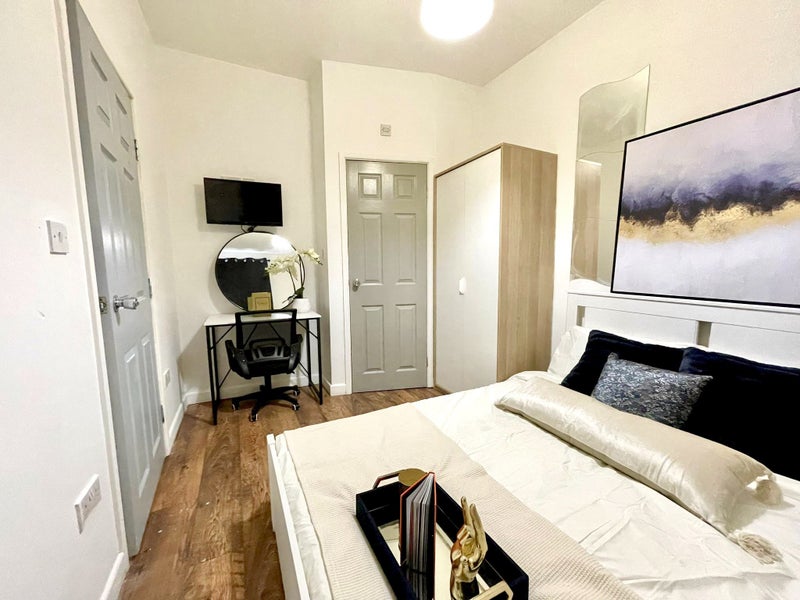 Welcome to a double ensuite room in central Coventry for only £595, with a deposit of just £350. All bills are included, making for hassle-free living in a newly renovated abode designed for comfort and convenience. Each boutique room comes equipped with a TV for entertainment needs. The shared living space is beautifully kept, with a fully equipped kitchen featuring modern appliances. Amenities like shops and gyms are conveniently located nearby, with parking available outside the property.