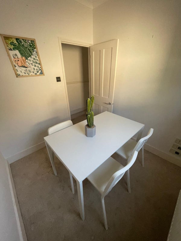 This beautiful double room is located in a designer shared maisonette with a new kitchen and 2 bathrooms. The spacious kingsize/double room comes fully furnished with a designer bed, wardrobe, chest of drawers, and other amenities. The communal areas include a separate dining room, a shared designer kitchen with heated floors, and a private balcony with views over London. The flatmates are laid back professionals who are respectful and enjoy a nice chat. The property is conveniently located near Kensal Green tube station, Kensal Rise Overground, and various amenities, making it an ideal place to call home.