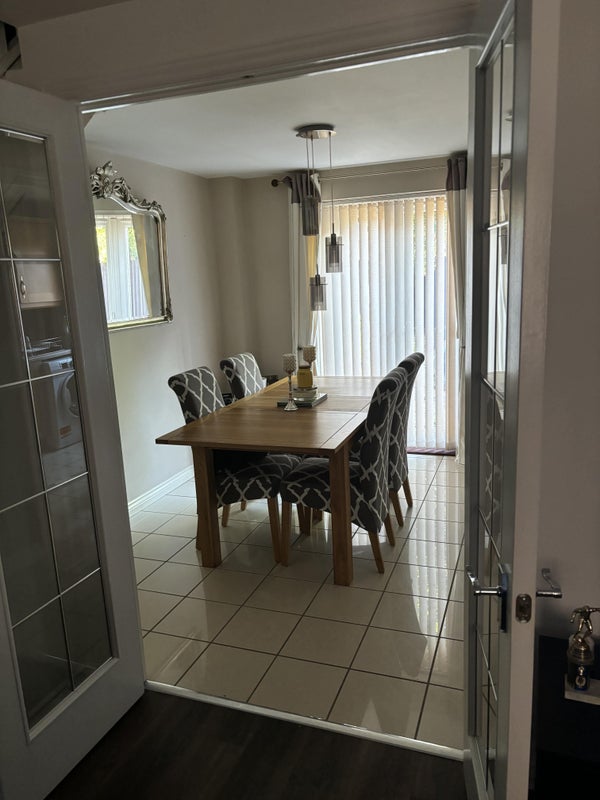Located in a new estate, this property offers a new home with all bills included. The fully furnished space features high-speed fiber optic broadband and free off-road parking. All services bills, including gas, electricity, water usage, and council tax, are covered within the rent. The kitchen is equipped with essential appliances such as an oven/cooker, fridge freezer, microwave, kettle, toaster, washing machine, and air fryer. The living room and dining room both have smart TVs and a dining table for shared use. While there is no TV in the rented room, the host is willing to provide one if needed.