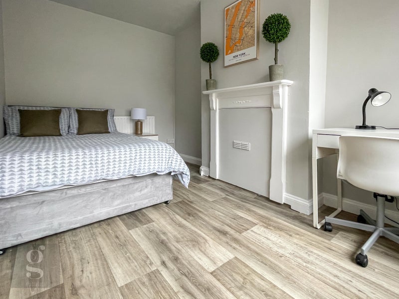 The available room in this shared house is well-furnished and offers a cozy and inviting atmosphere. The room comes with built-in wardrobes for ample storage and workstations for convenience. The communal lounge area is a great space for socializing or relaxing, featuring a new wall-mounted TV and direct access to the garden. The overall feel of the flat is modern, comfortable, and homely, providing residents with a welcoming environment to call home.