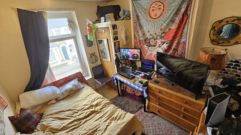 The available room in this property is designed for comfort and functionality. Furnished with essential items, residents can enjoy a cozy atmosphere conducive to relaxation and productivity. Shared spaces include a modern communal kitchen and three clean bathrooms, ensuring convenience for all occupants. The overall feel of the flat is welcoming and conducive to a harmonious living environment.