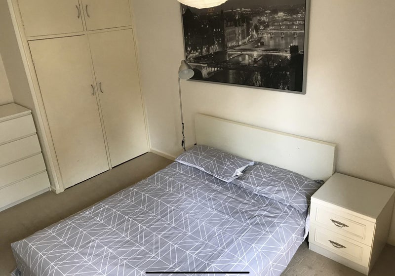 The available double room in this house features a wardrobe with ample storage space, a comfortable double bed, a desk, and a chair. The shared spaces include a fully fitted kitchen and a lounge equipped with a 40-inch TV, creating a cozy and functional living environment for residents. Additionally, off-street parking is available for an extra fee, adding convenience for those with vehicles.