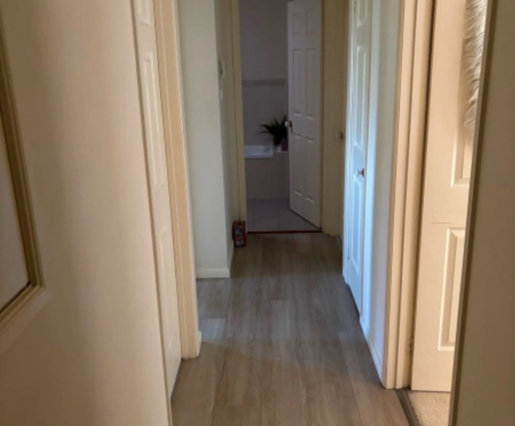 The house is three bedrooms with two bathrooms. Everything is on walking distance from here. Shops are 5 min walk from here.