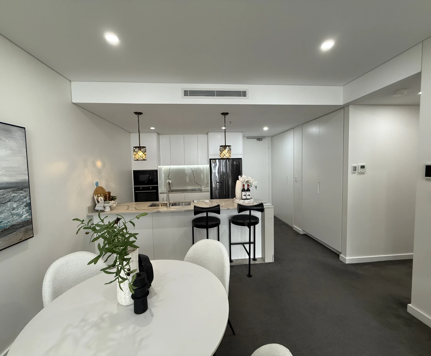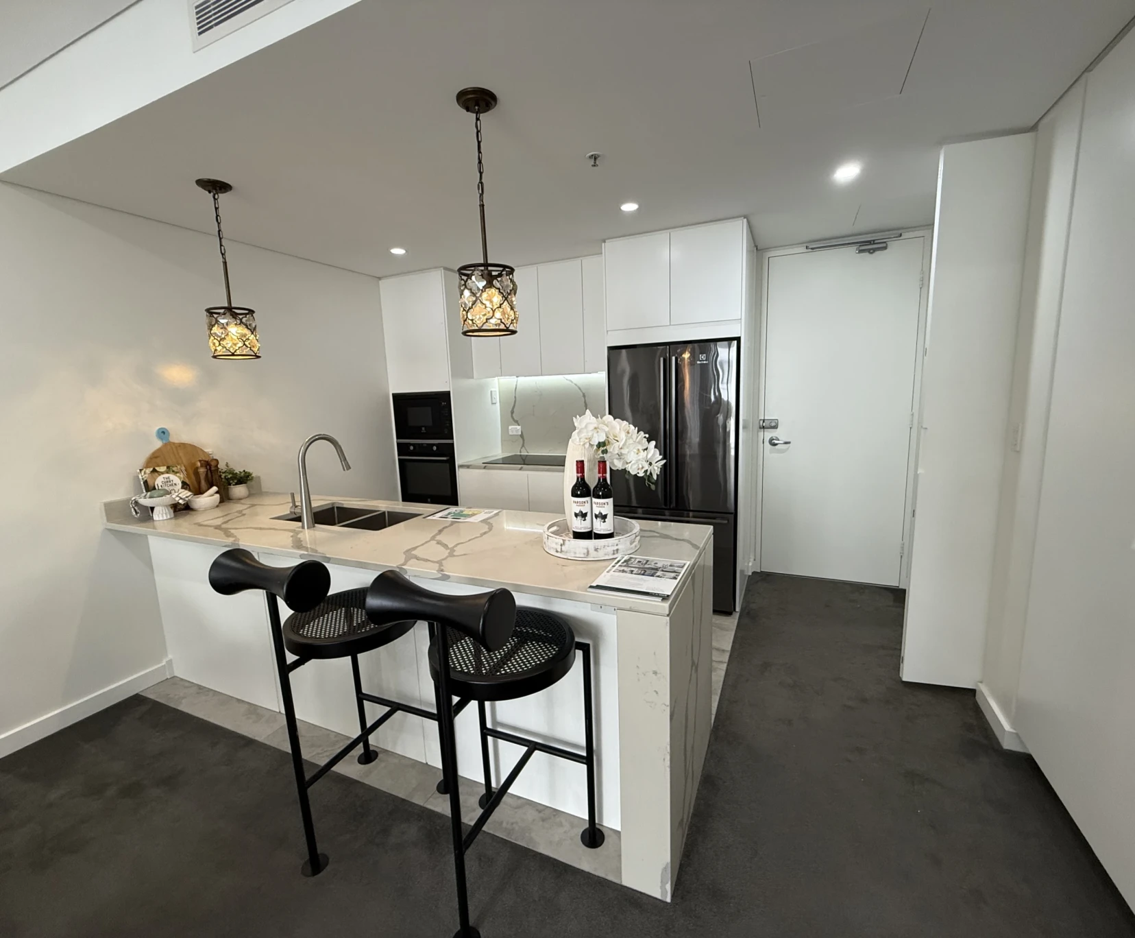 The apartment has a pool downstairs and the Hills Showground Metro is just an 8 minute walk, which will take you into the city in 35 mins.