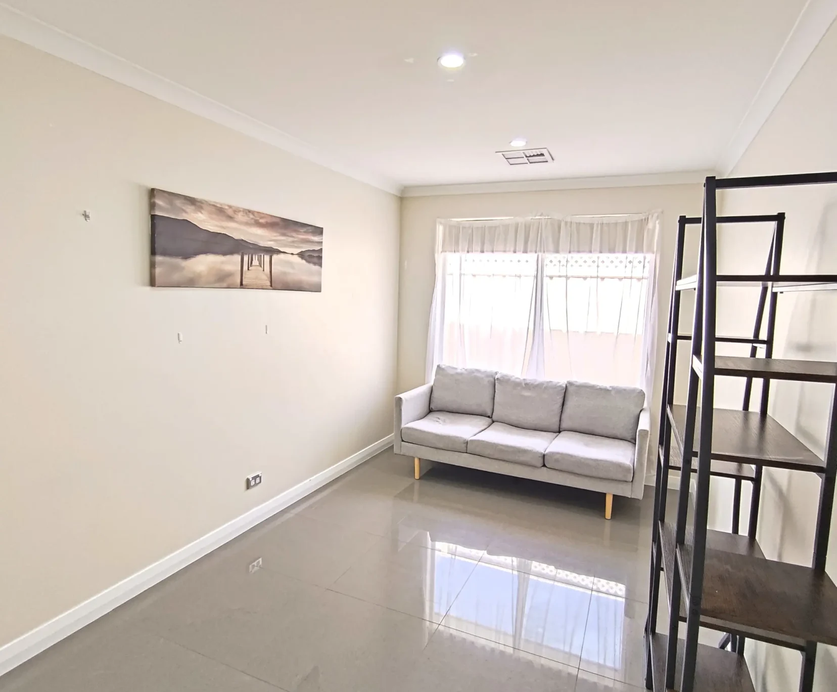 We currently offer a large furnished bedroom with a queen-sized bed and an adjacent private lounge.