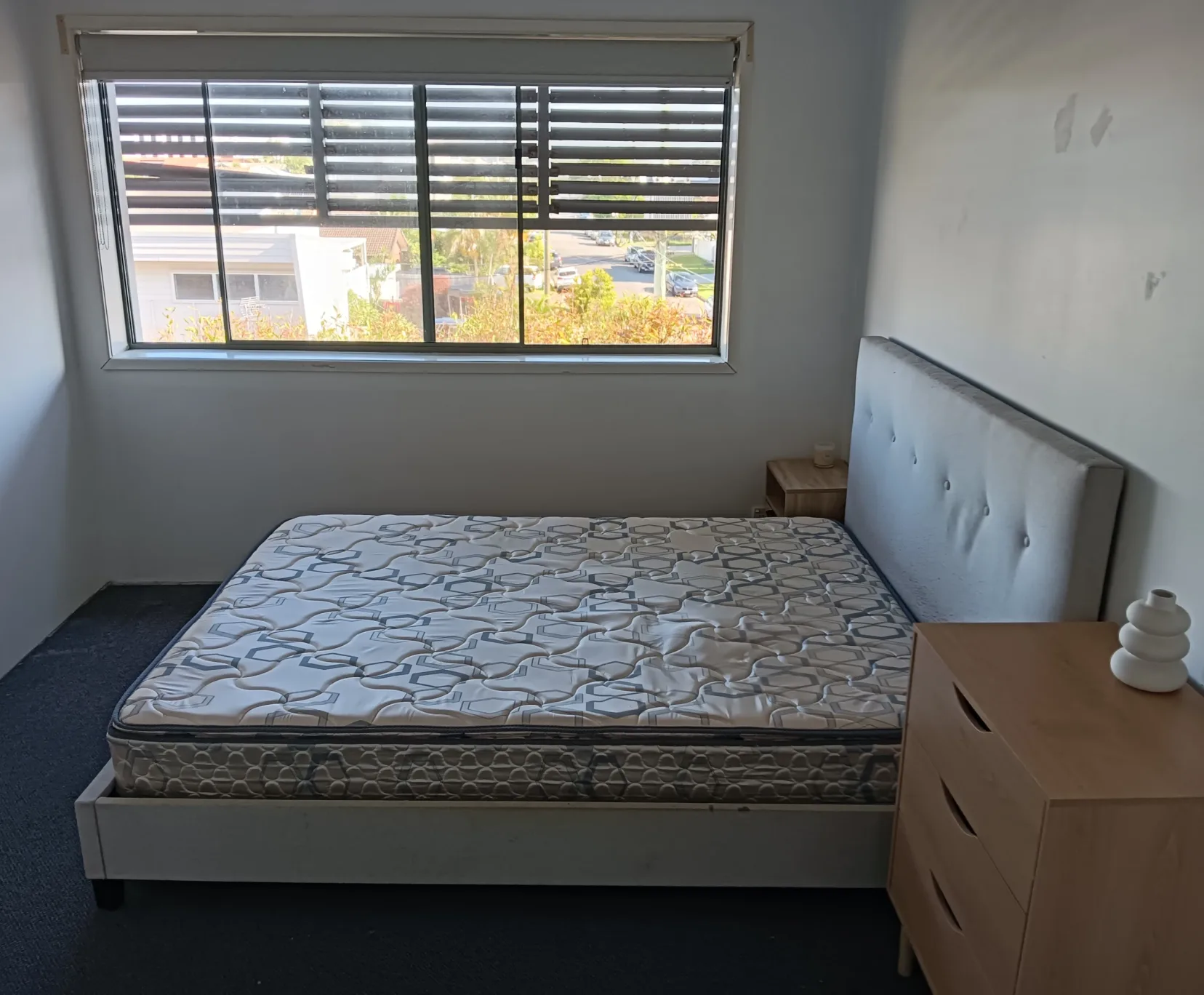 The house is fully furnished, the room has a queen bed/drawers and a bedside table.