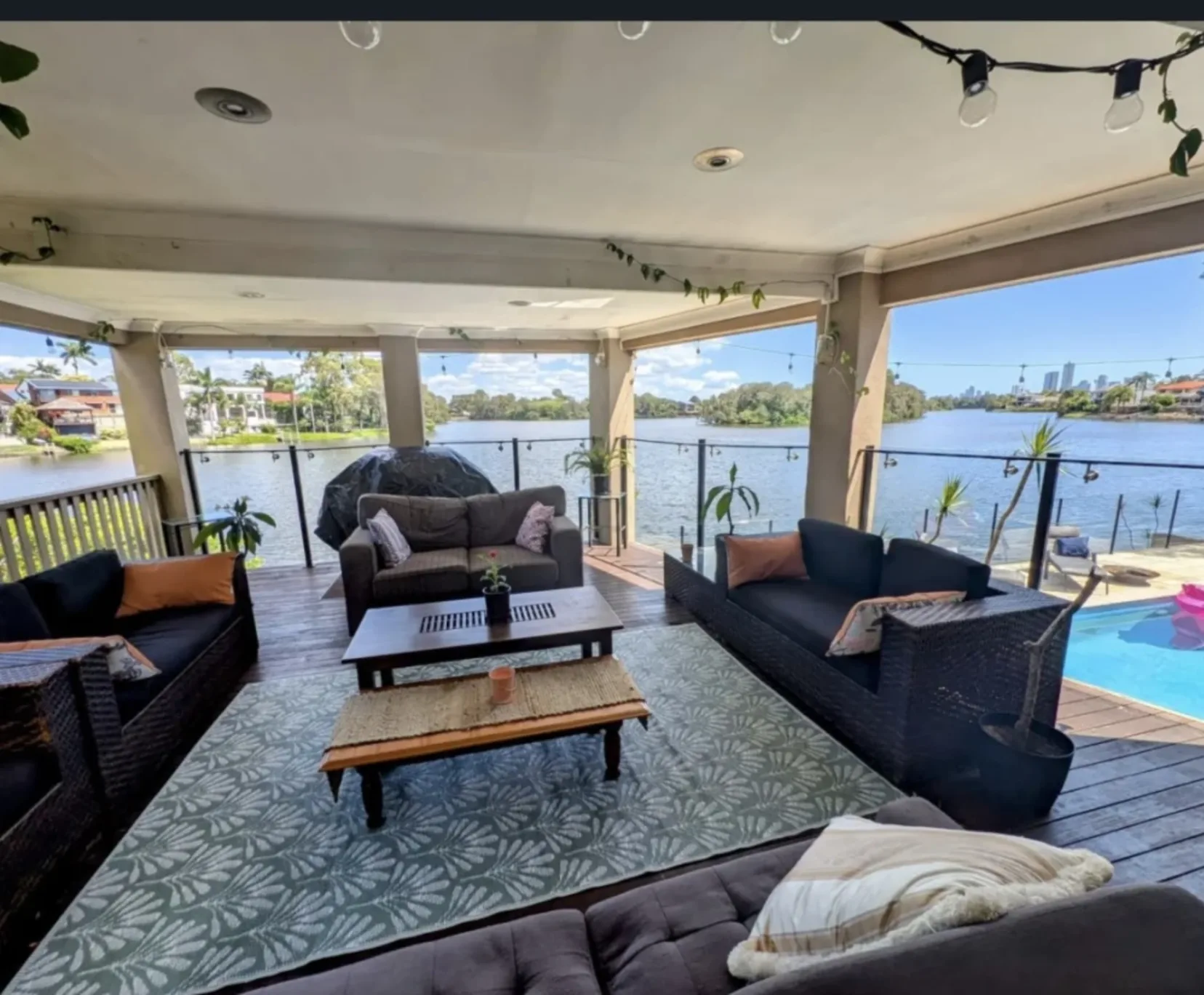 The house is technically Robina but more Varsity Lakes. It's close to Bond uni (10 min Walk) and very central to everything. The beaches are pretty near too, but a car makes everything easier. The house itself is beautiful, the lake is super quiet and peaceful. Lots of birds and beautiful nature. There's a paddleboard to use. The house is large with many different areas to chill so your definitely not on top of each other.