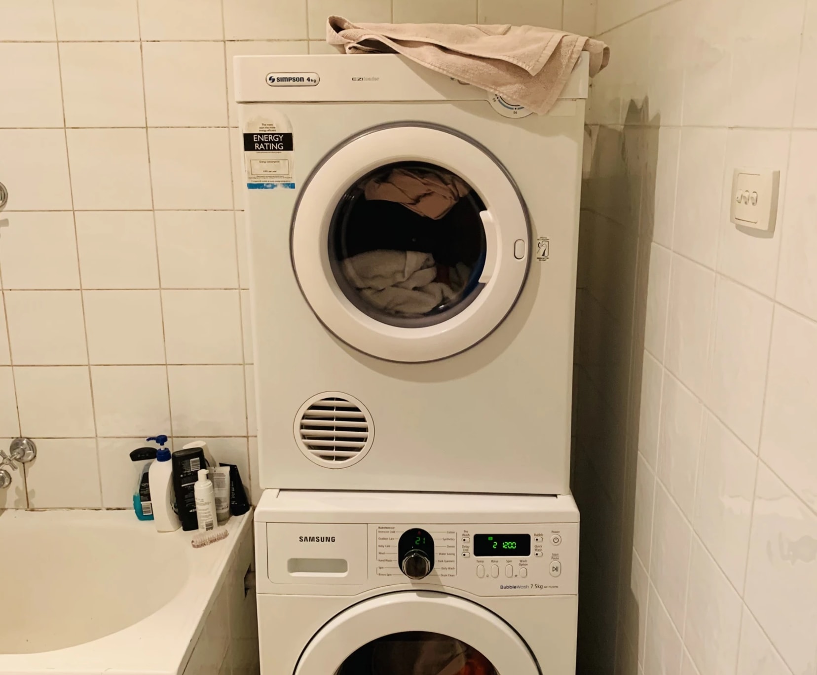 Also provided for free: handwash liquid, dishwash liquid, sponges, garbage bags, toilet paper.