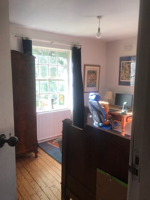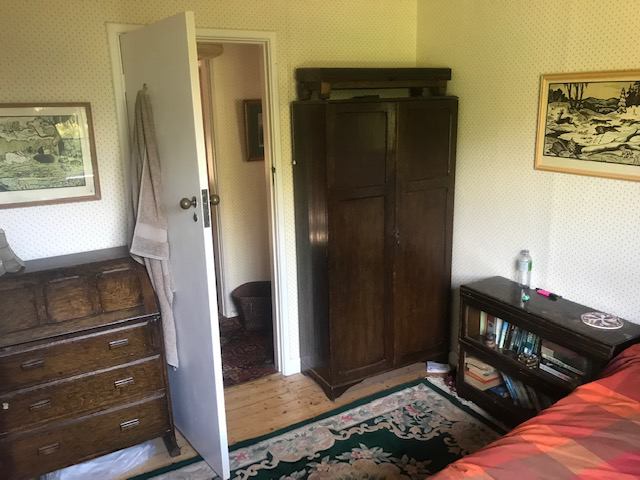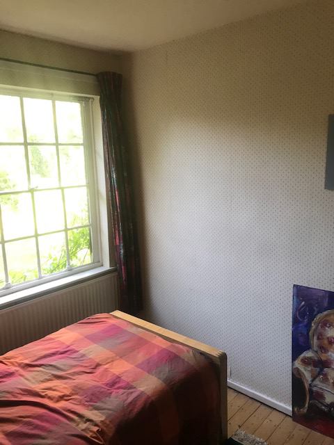The available single room features a single bed, while the connected living room offers a day bed, capacious desk, and potential bookshelf. These rooms are slightly separated from the rest of the house, providing a private living area for the lodger. The atmosphere is cozy and conducive to both work and relaxation. The house layout emphasizes privacy, with the owner valuing their own space when present. Guests are not allowed, ensuring a peaceful living environment for the lodger.