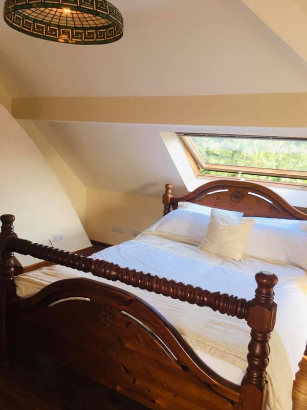 The loft room available for rent is located on its own floor, offering privacy and tranquility. Furnished with a king-size bed and fitted wardrobes, the room is bright and airy, with two Velux windows providing views of the sky. The overall ambiance of the house is calm and serene, ideal for those who appreciate a peaceful living environment. Shared spaces include a spacious kitchen and a back garden, perfect for relaxation and unwinding after a busy day. The homeowner, who enjoys playing acoustic guitar, ensures that noise levels are kept to a minimum, allowing for a quiet and comfortable living experience.