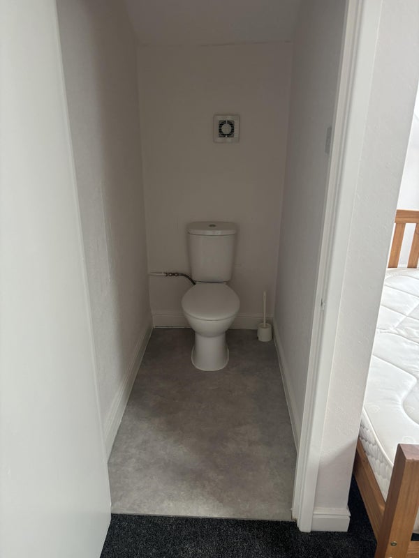 The room in this property is comfortable and practical, providing essential amenities for residents. Furnished with a toilet and basin, the room offers convenience and privacy. The shared spaces, including the large TV room, pool table room, communal kitchen, conservatory, and garden area, create a welcoming atmosphere for residents to relax and socialize. The overall feel of the space is cozy and well-maintained, ensuring a comfortable living experience for all occupants.