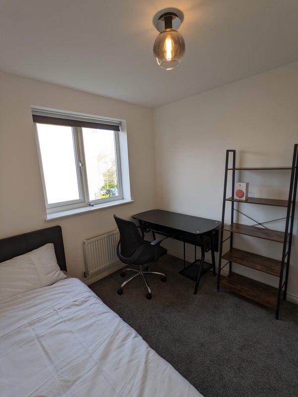 The available room in this household is furnished with practical and comfortable furnishings, creating a cozy and inviting space for residents. The shared areas of the flat are well-maintained and provide a relaxing environment for socializing or unwinding after a long day. The overall feel of the living space is one of tranquility and convenience, ensuring residents feel at home in their surroundings.