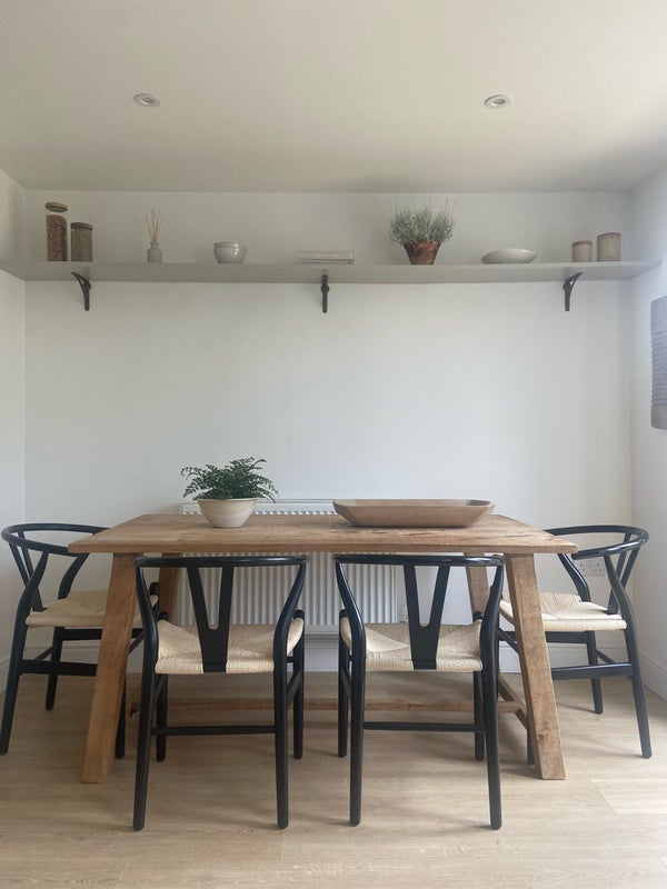 The available room exudes a welcoming ambiance, with the upcoming room decoration adding a touch of freshness. The furnishings in the room, including a wardrobe and bedside table, cater to the practical needs of the resident. The shared spaces in the flat, such as the open-plan kitchen and dining area, are designed for comfort and functionality. The overall feel of the living space is warm and inviting, making it a perfect retreat for the residents. The presence of a small dog adds a homely feel to the environment, creating a sense of companionship. The calm and organized atmosphere of the flat ensures a peaceful living experience for the tenant.