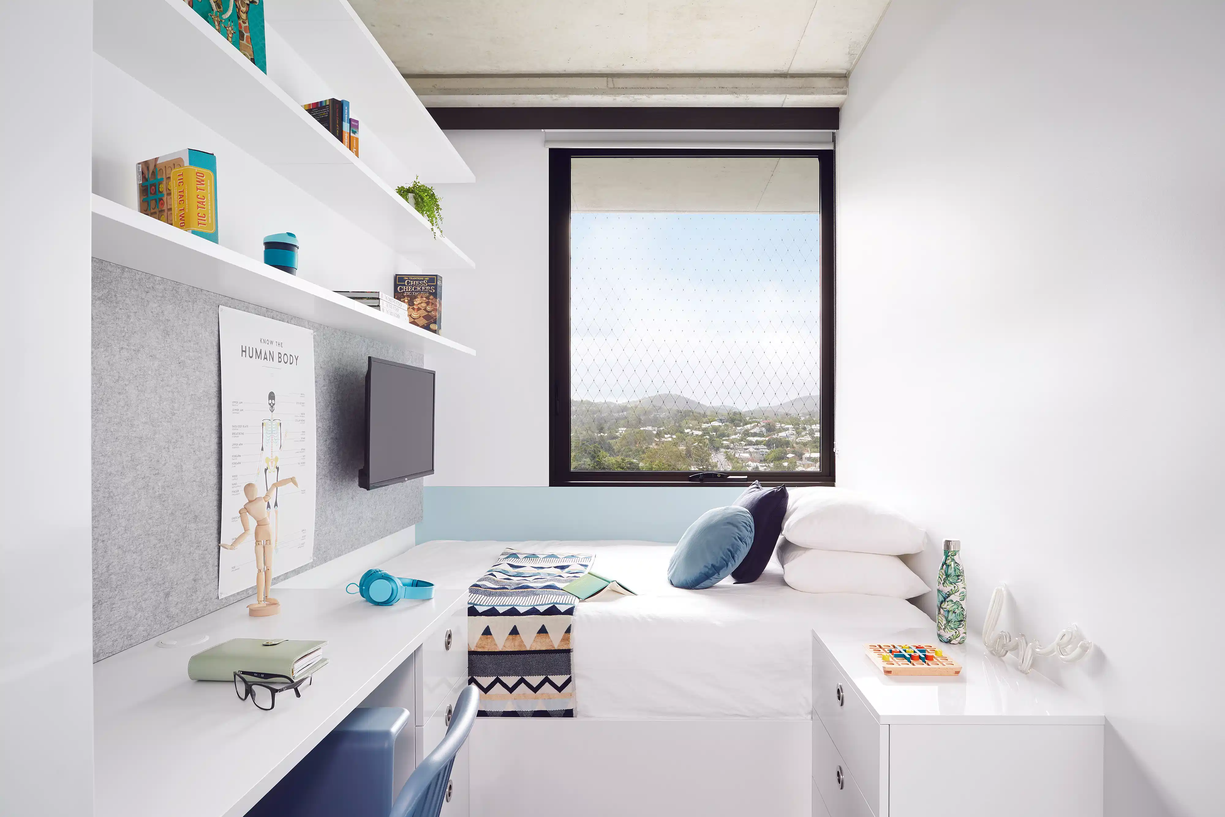 Shared Apartment - These are the best options for student accommodation in Australia for international students looking for a community in a room. The Scape Toowong allows 5 to 8 people to live in one shared apartment, with all the modern amenities, such as 3 to 4 bathrooms, a shared flat screen TV, a study desk, a shared kitchen area, a shared dining area, a shared lounge area, unlimited Wi-Fi, and air conditioning. The all-inclusive rent is approximately AUD 369 per week.