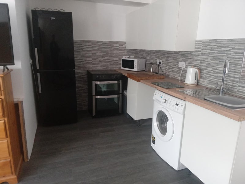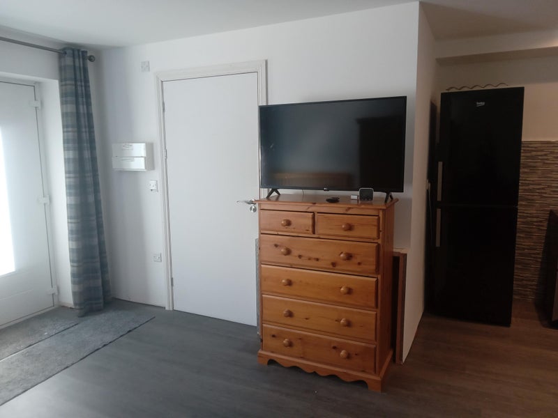 This self-contained living space offers a private and comfortable living arrangement. The property includes a kitchen area, sofa, double bed, wardrobe, and chest of drawers. The ensuite bathroom features a walk-in shower, providing convenience and privacy for the residents. With no access to the main property, residents can enjoy their own space. On-street parking is available close to the property, and a small patio area adds a touch of outdoor relaxation. The property is ideal for those seeking a private and self-contained living space.