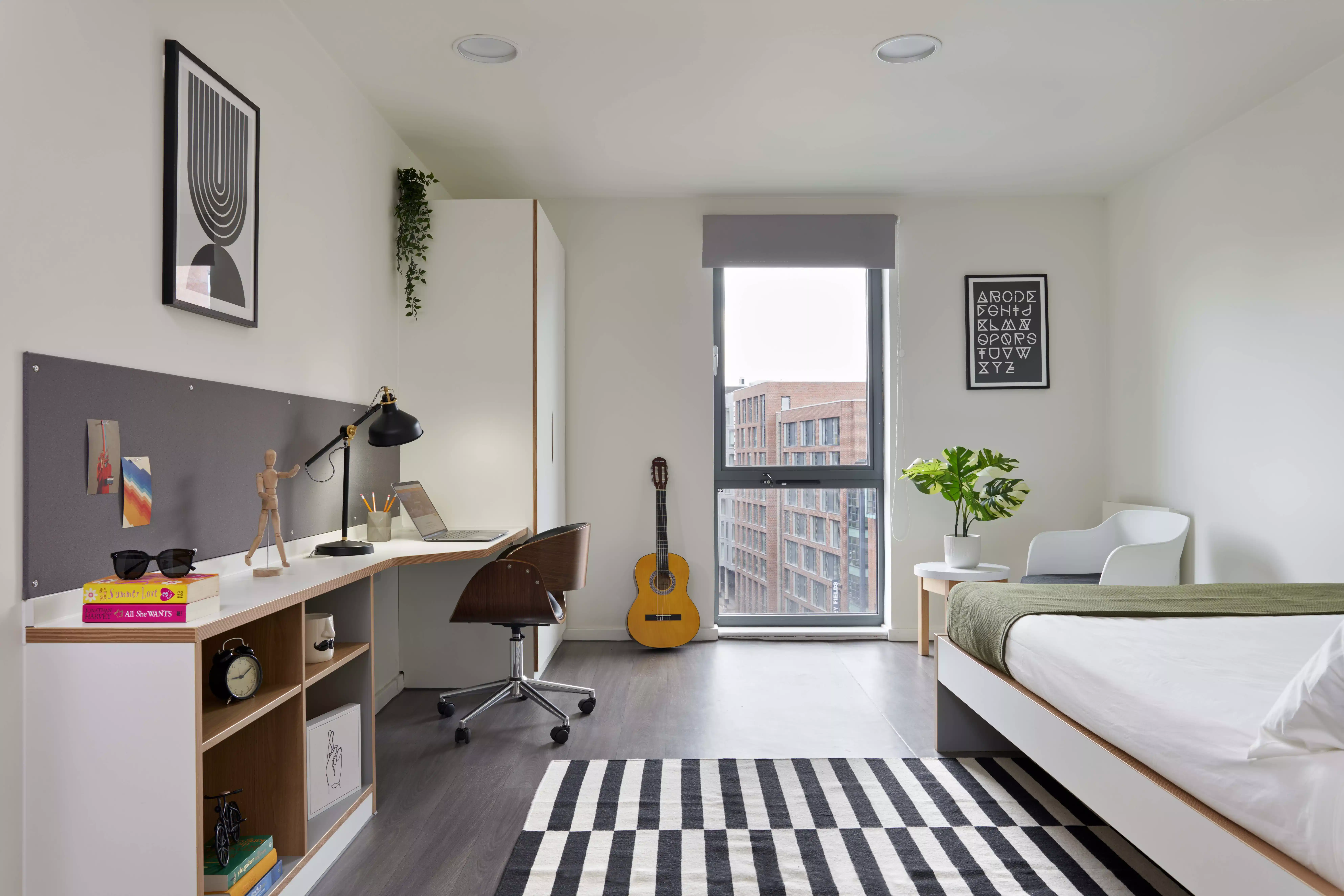 These apartments offer residential-style spaces for students, offering full apartments to individuals with premium facilities. Each flat features 1 or 2 bedrooms, a kitchenette, a personal en-suite bathroom and a study area. Sharman Court offer three types of apartments, including:
