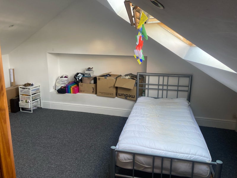 The available room in this shared house offers a comfortable and practical living space. The furnishings are well-maintained, and the overall feel of the room is cozy and inviting. The shared kitchen/living space is spacious and well-equipped for social gatherings or quiet nights in. The garden provides a peaceful outdoor retreat, and the free parking adds convenience for residents with vehicles.