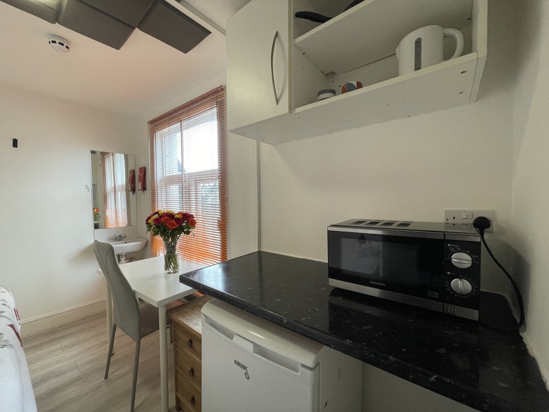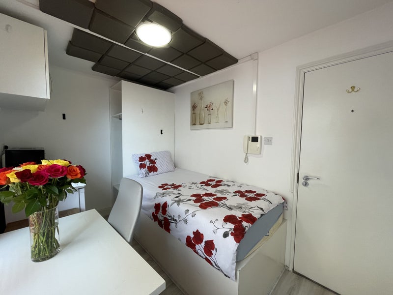 The single bedsit is fully furnished, offering a cozy and functional living space for residents. The room includes essential amenities such as a cooker, fridge, and microwave, ensuring convenience for daily living. The shared bathroom and toilet are well-maintained, with daily cleaning provided by a housekeeper. The communal laundry room with a washing machine and dryer adds practicality to the living space. Carpet flooring adds warmth and comfort to the room, creating a welcoming atmosphere for residents. The property's location on the second floor with lift access enhances accessibility for residents.